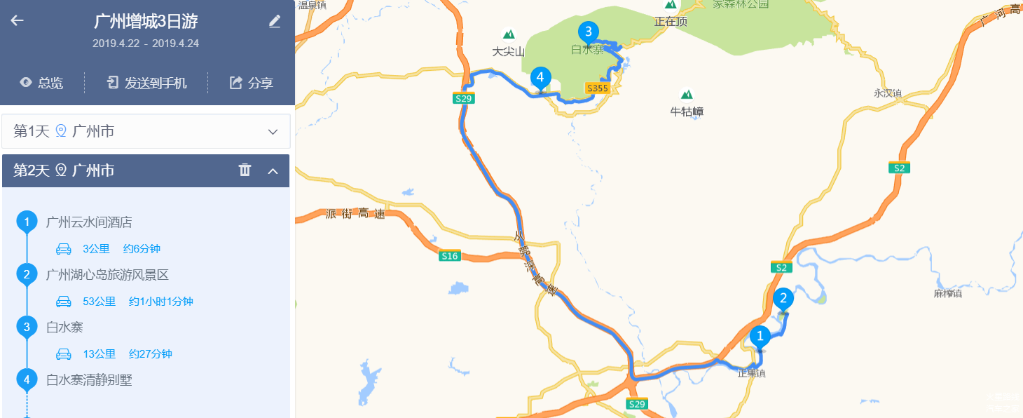 增城区正果镇→湖心岛景区→白水寨