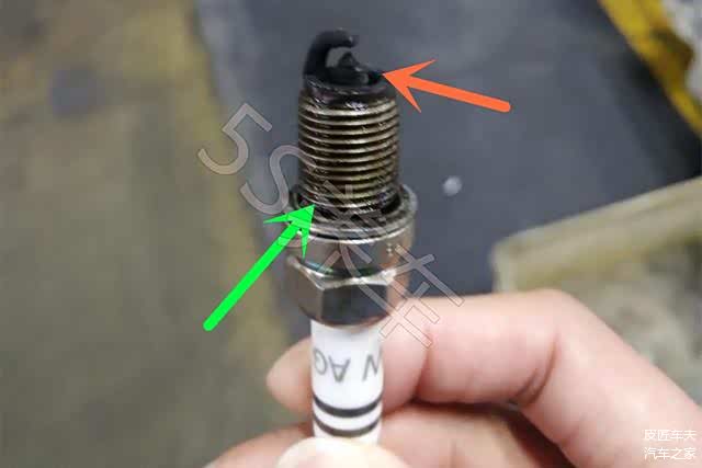 下图这是修车师傅拆下来的3缸火花塞,火花塞的电极上不仅存在大量的黑积碳,而且在螺纹扣上还有发动机渗漏出来的机油,修车师傅介绍,火花塞上的积碳绝大部分都是烧机油造成的,当积碳过多时就影响到火花塞的点火性能,甚至会直接导致火花塞不点火,而螺纹扣上的机油则是气门室垫漏油所带来的。