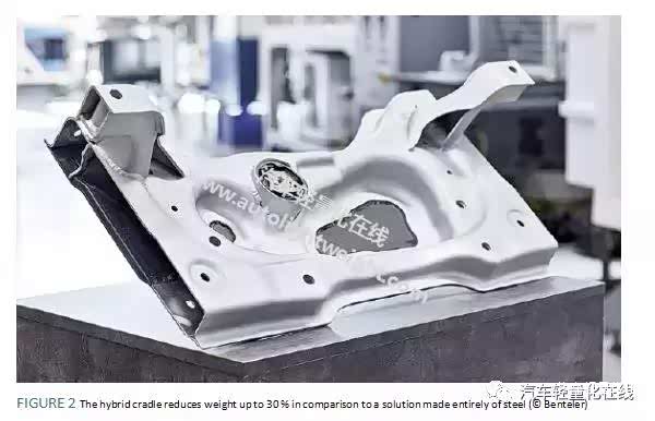 目前,大多数汽车支架都使用了由钢板制成的传统壳体结构。这些结构存在着巨大的轻量化潜力来减少燃料消耗以及车辆的二氧化碳排放。这就是为什么汽车零部件供应商本特勒汽车公司与帕德博恩大学以及纤维增强塑料(FRP)供应商一起开发了轻型混合材料副车架。