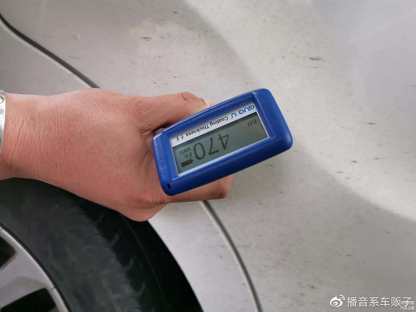 在通过仪器检测时发现右后车门和轮拱有腻子的存在,当这个部位出现腻子时,就需要进行下一步行动了