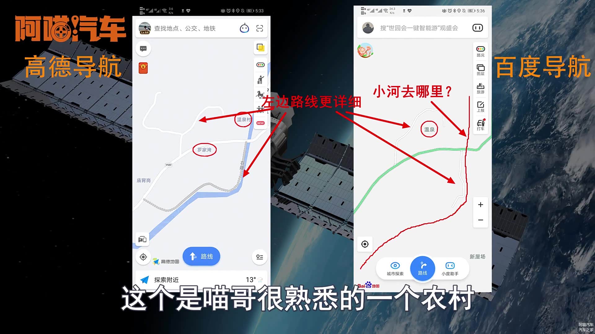 通过以上的对比大家可以发现对于路线的精准度方面,个人感觉可能高得会略占一筹,同时在路线的更新上面高德的速度会比百度更快,所以说要是去一些农村里或者偏远地方高德会比百度略微有优势,但是百度还有一个很大的优势就是实景地图,尤其是在城区的实景地图还是做得非常好用,同时在生活的方便性方面,比如说一些吃喝玩乐的信息方面,百度可能会更有优势,以上就是喵哥给大家做出的总结,希望喵哥的个人使用体验能够给大家一些参考建议。