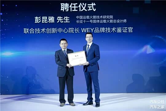 除了航天领域的硬核实力,WEY品牌和中国航天也已经充分融合彼此的软实力,在技术人才方面交流互通,携手共进。在一个多月前签约仪式现场,中国运载火箭技术研究院长征十一号固体运载火箭总设计师彭昆雅,正式出任联合技术创新中心院长及WEY品牌技术鉴证官,其也正在不断助力中国航天与中国汽车技术的融合发展。
