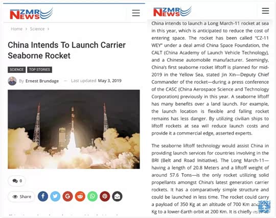 在签约成功的第一时间,全球著名的彭博新闻社就报道了这个新闻,表示中国航天与长城汽车WEY品牌联手打造了“联合技术创新中心” ,并将本次海上发射的火箭命名为“CZ-11 WEY”号。而美国新闻期刊网站、法国回声报、意大利综合网站Agenzia Nova等外媒都争先报道了这一盛况。