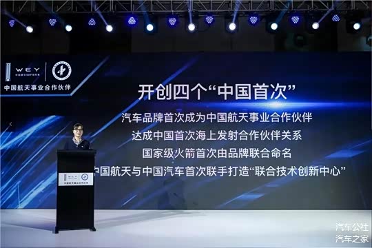 此次战略合作一举开创四个“中国首次”: 汽车品牌首次成为中国航天事业合作伙伴、达成中国首次海上发射合作伙伴关系,国家级火箭首次与企业品牌联合命名,中国航天与中国汽车首次联手打造“联合技术创新中心”,助力WEY品牌实力铸就中国智造新名片。