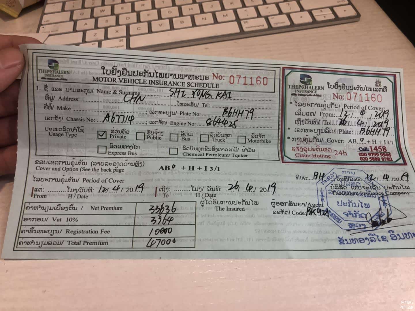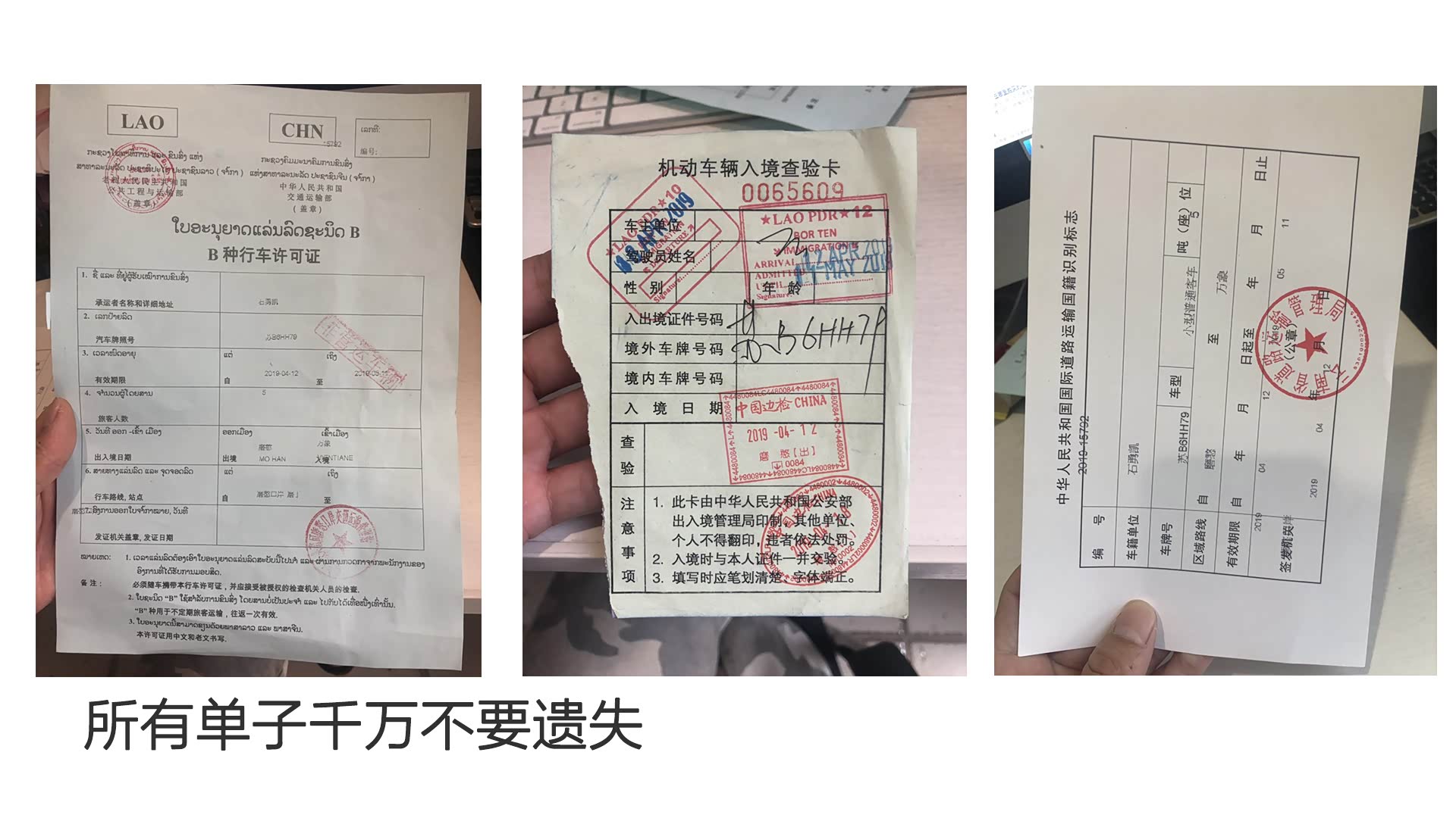 B:接着买完保险后,拿着车辆行驶证,驾驶证,保险单(国内和老挝)走楼梯上二楼办理车辆出境手续(不会,跟着大家上去交材料就行)办完之后给你以下单子