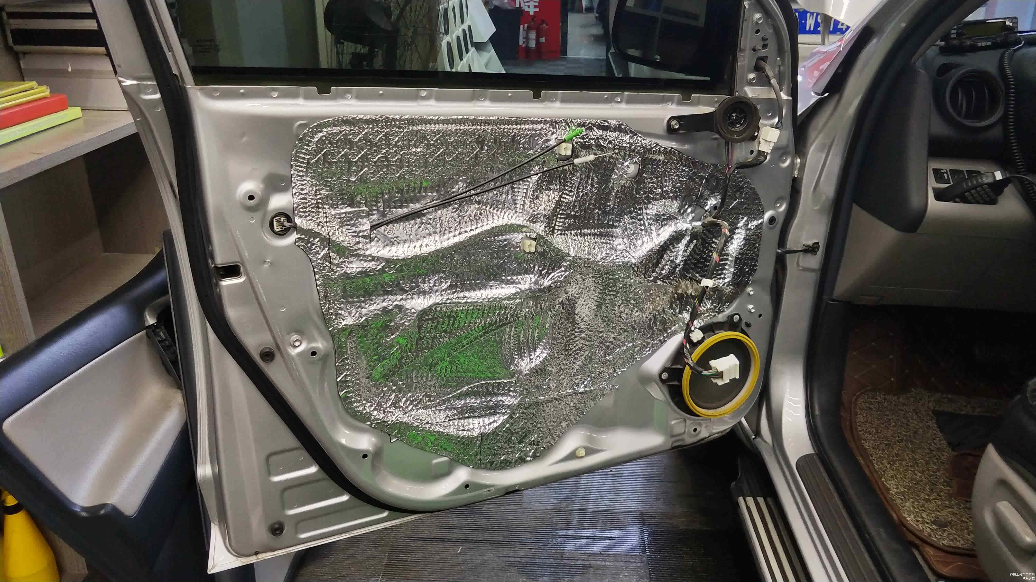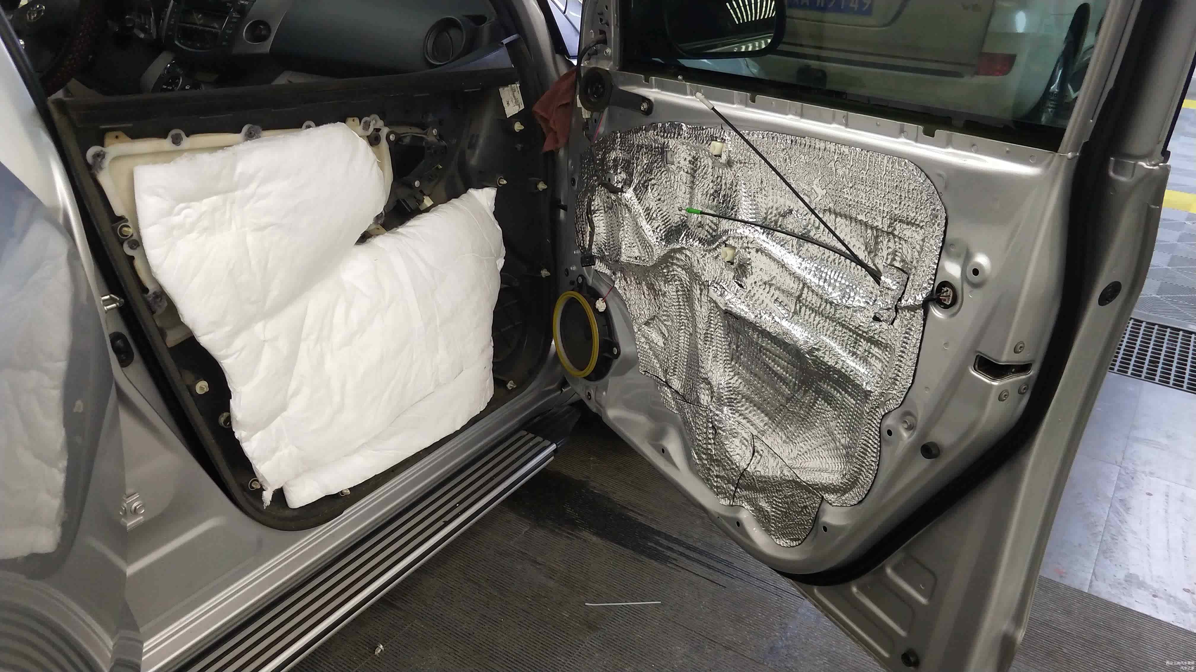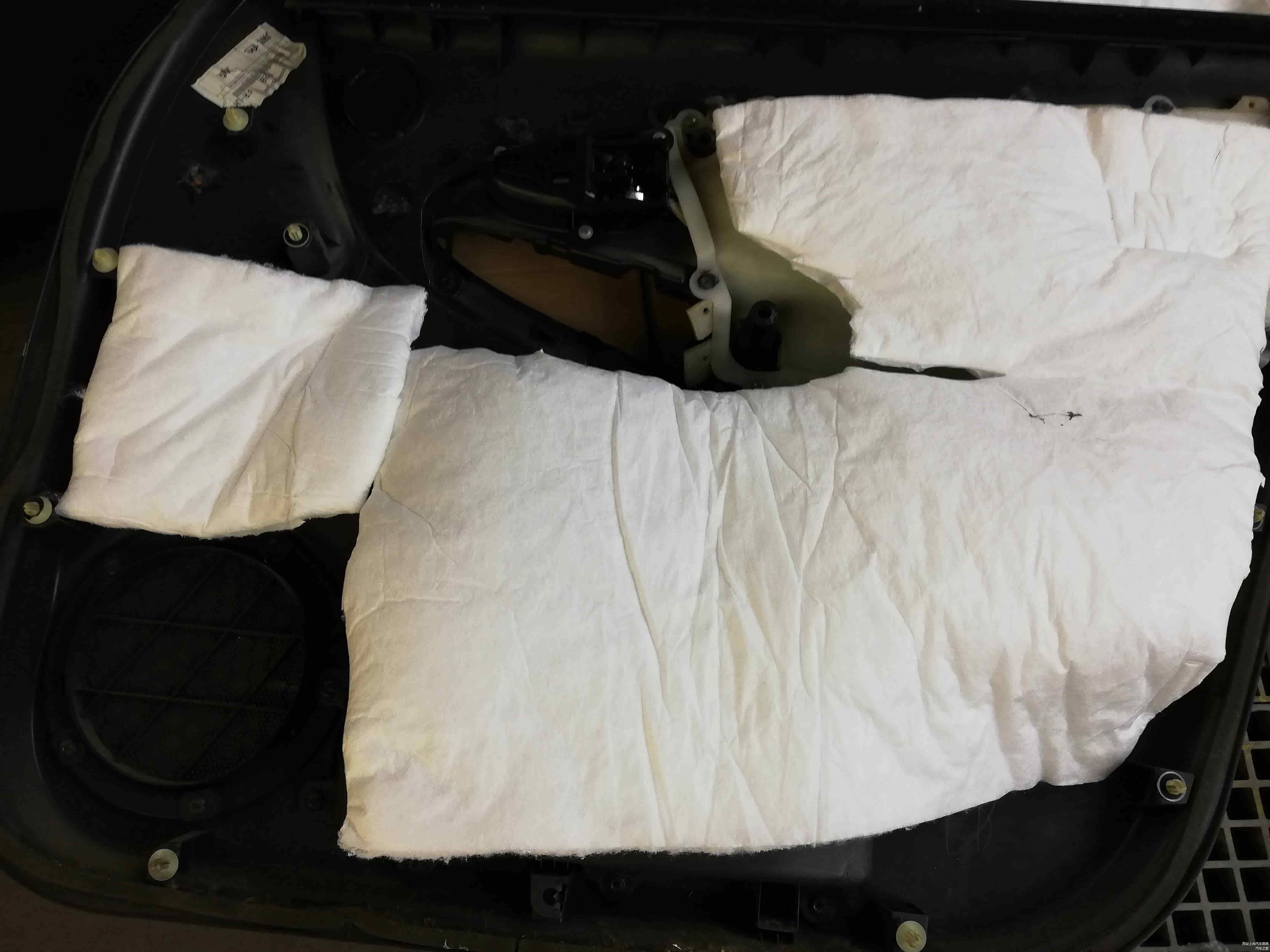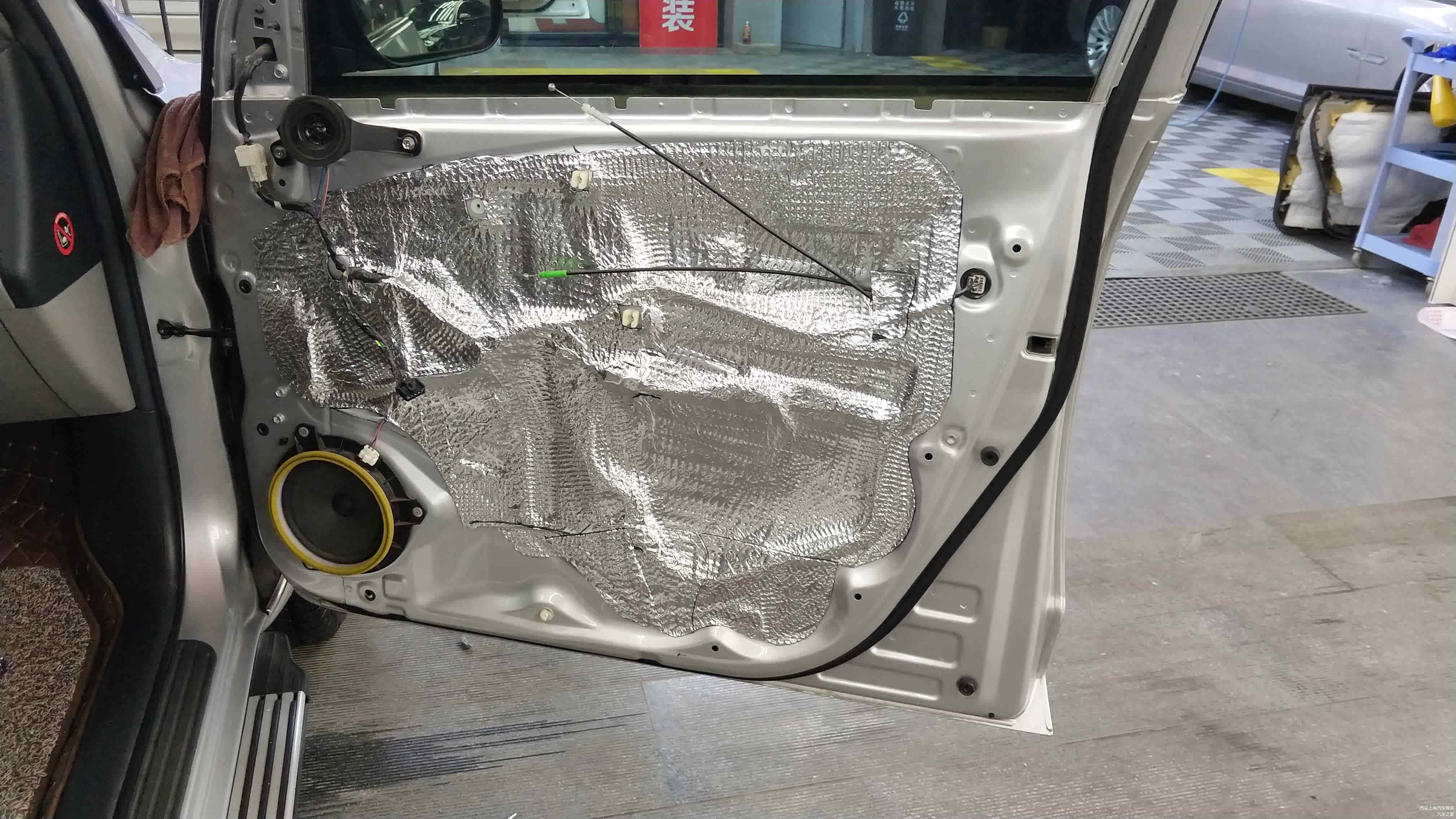 车门位置做标准的双层隔音后,再在车门外层内饰板贴装一层吸音材料。