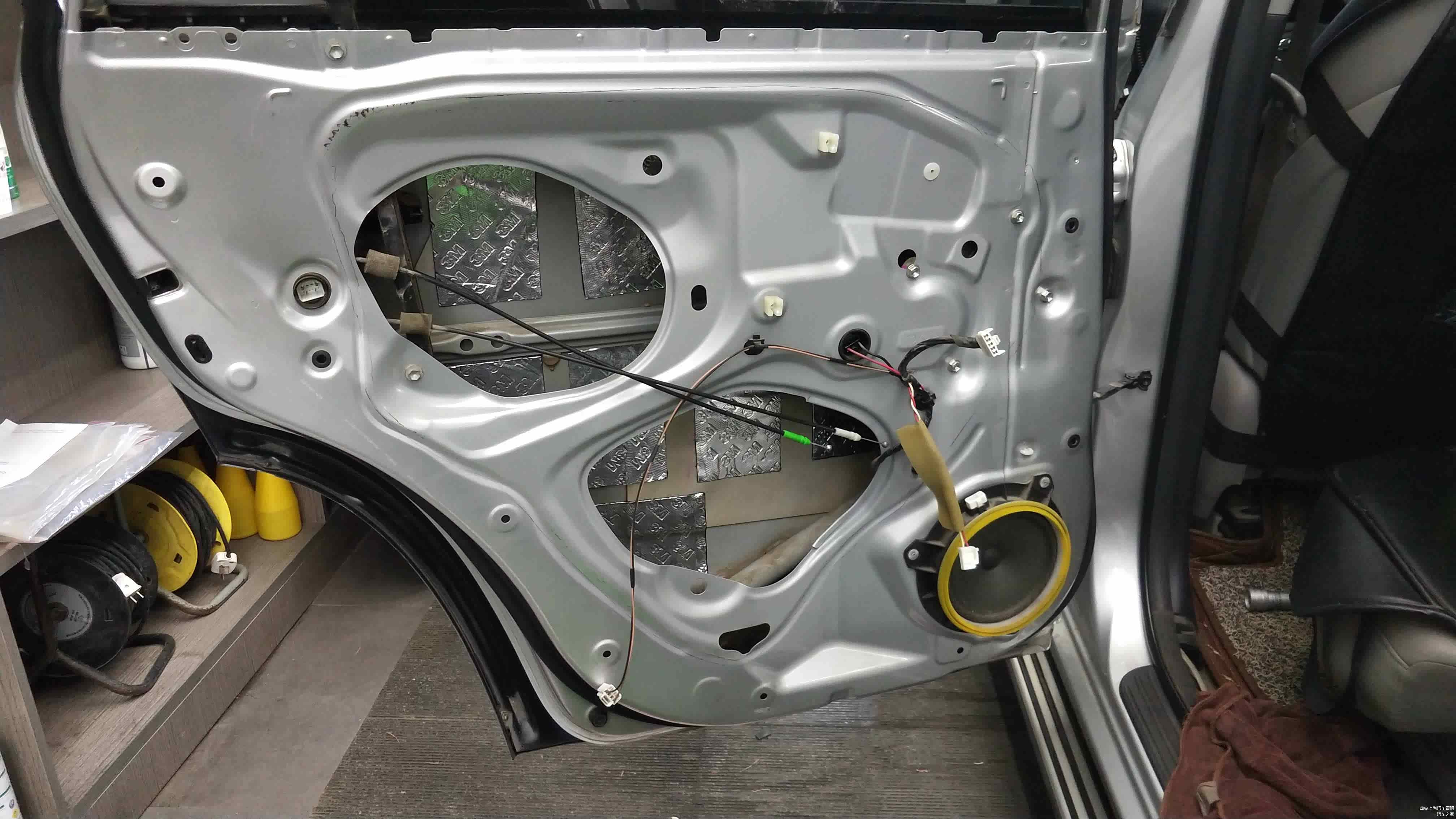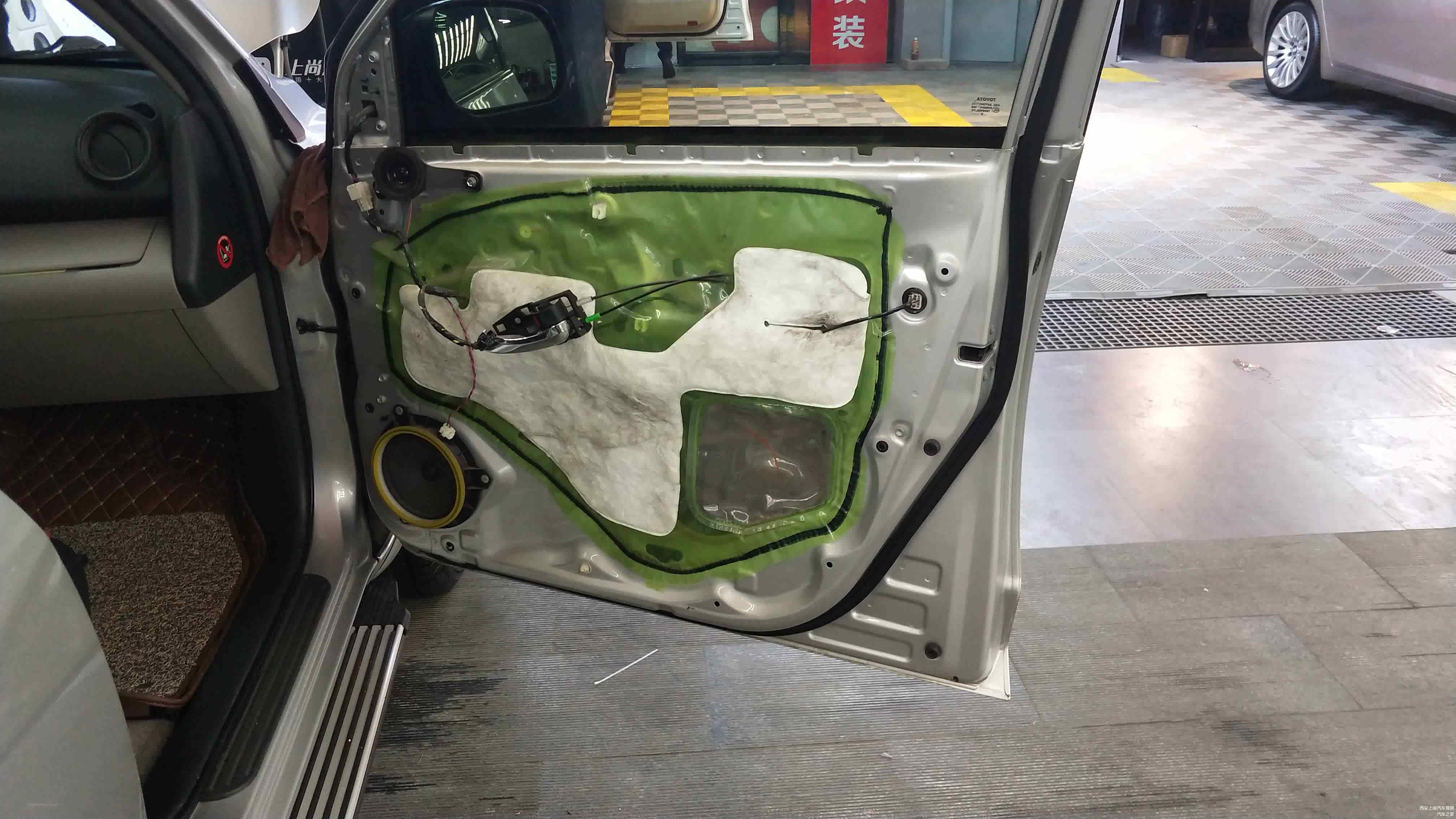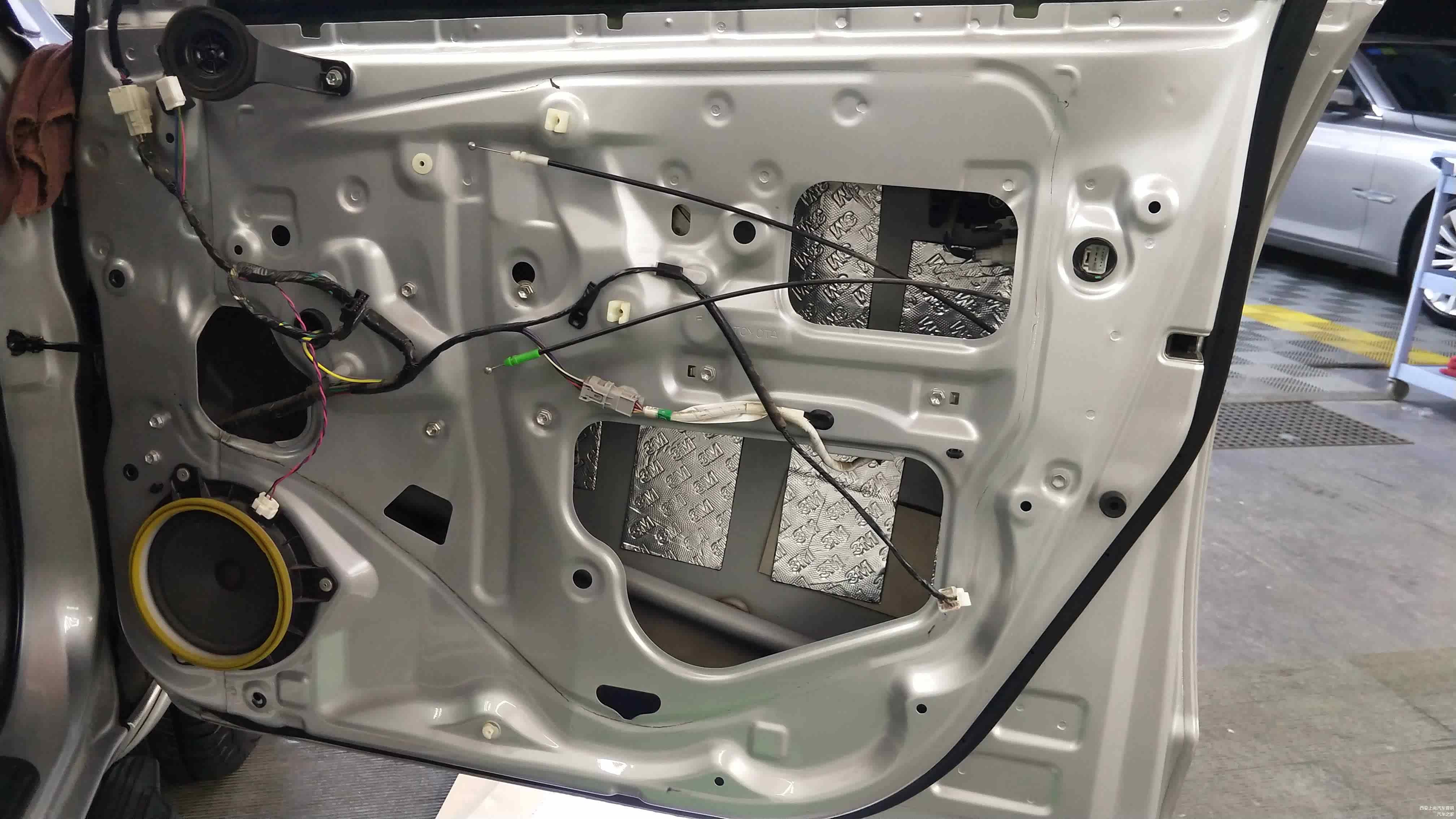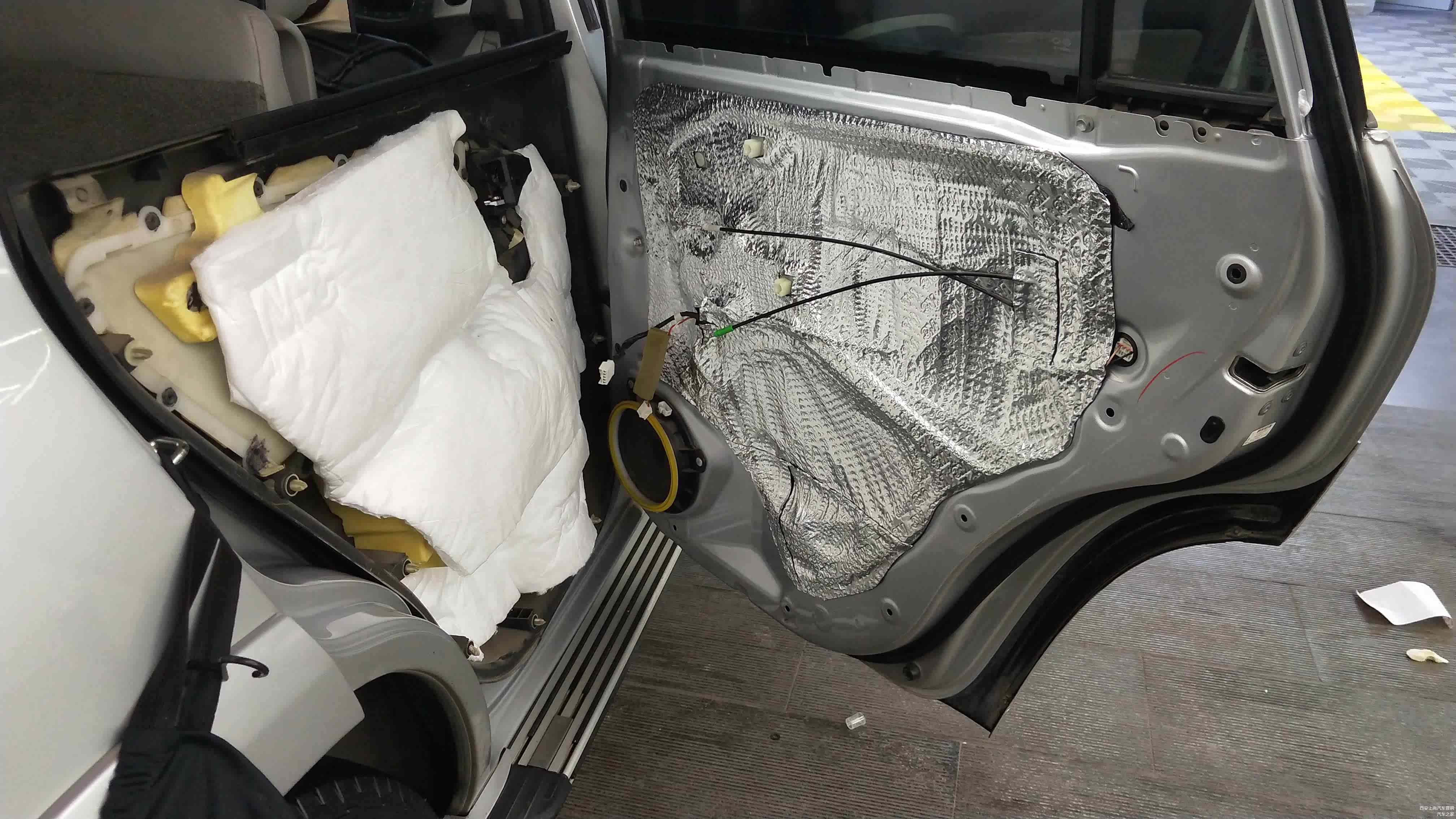 车门位置做标准的双层隔音后,再在车门外层内饰板贴装一层吸音材料。