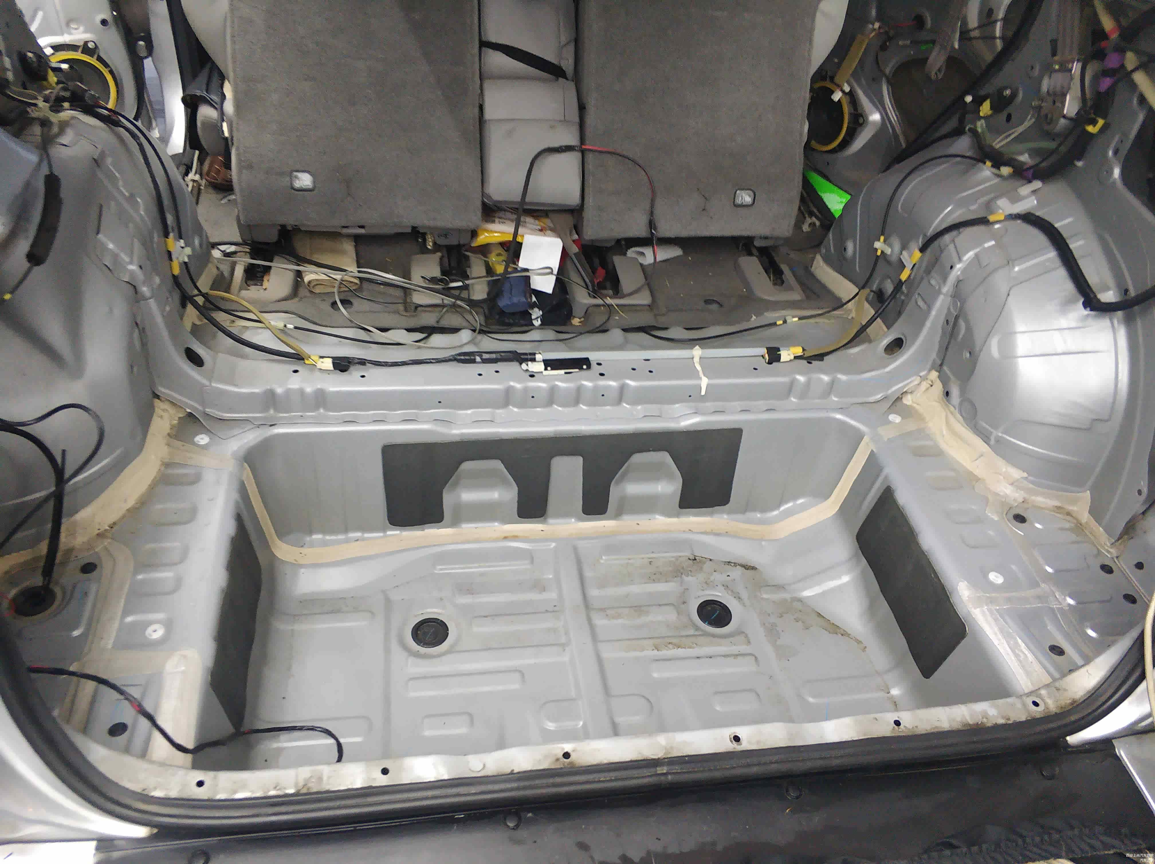 尾箱原图,没有任何隔音止震措施,行车途中会由于各种原因产生路噪,胎噪,车厢共鸣的噪声。