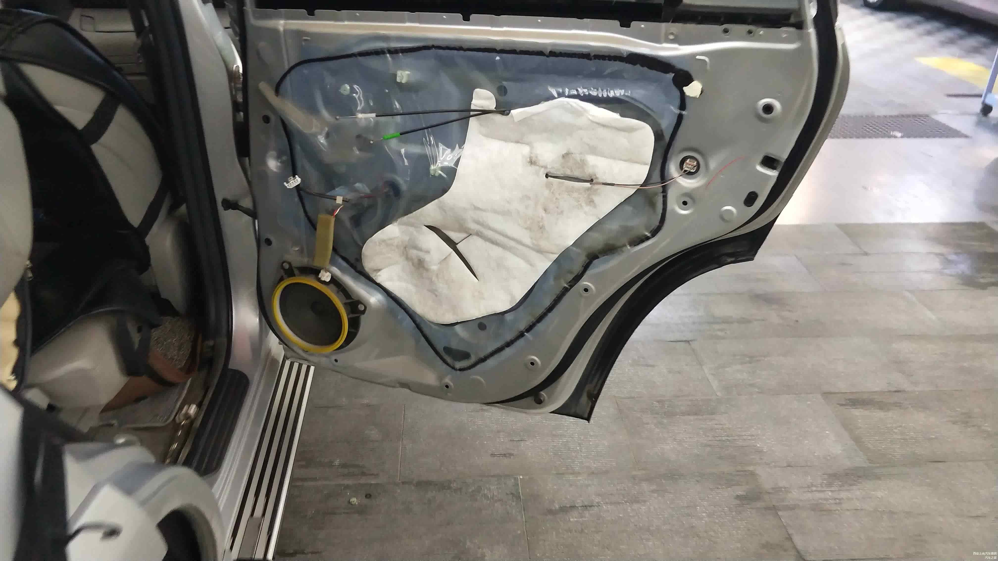 原车门的隔音材料是一层塑料薄膜,起不到任何隔音止噪的效果。