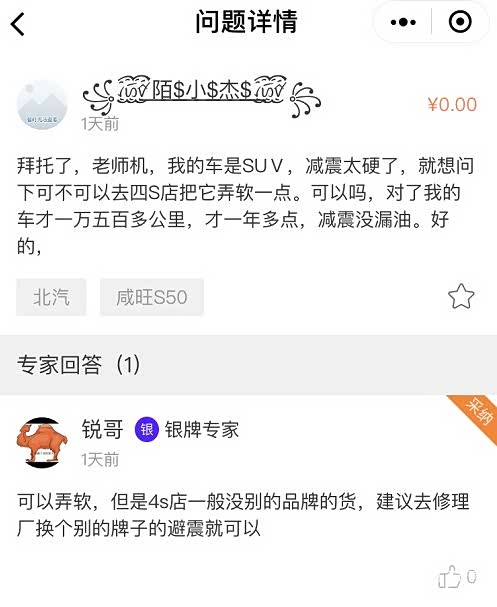 车友提问:我的车是SUV,减震太硬了,就想问一下可不可以去4S店把它弄软一点?车子才一万五百多公里,一年多点时间,减震没有漏油。