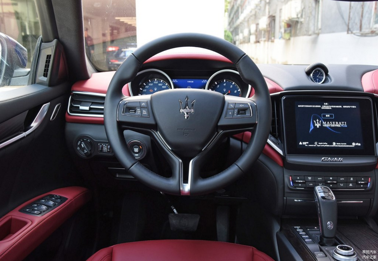玛莎拉蒂Ghibli的内饰有着较强的科技感,并且运动气息很浓郁,其中方向盘的设计显得特立独行,下半部分较为精致,不过按键的设计稍显保守,与强烈的运动风格不匹配。而换挡区域则足以成为亮点所在,挡把的设计比较有档次感,同时还能增强驾驶感受,这一点与宝马汽车的家族式设计有着异曲同工之妙。不过有些遗憾的是,它的中控区域设计稍显普通,或许运用到稳重风格的SUV车型中比较合适。