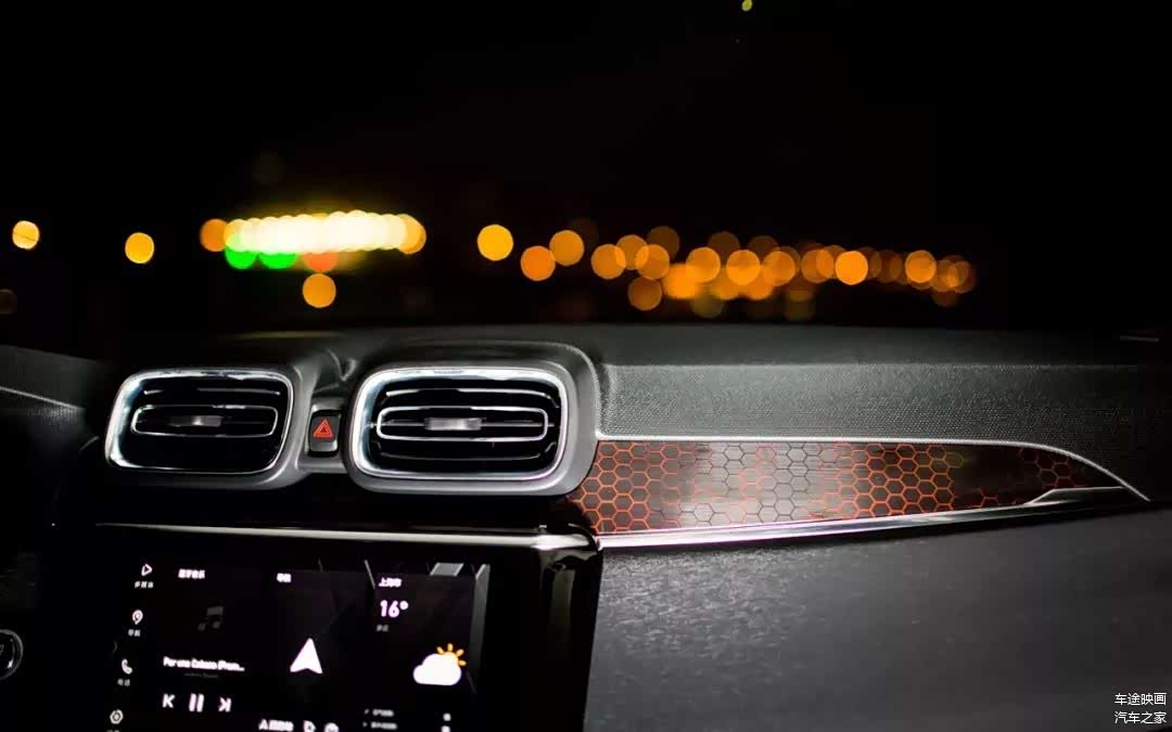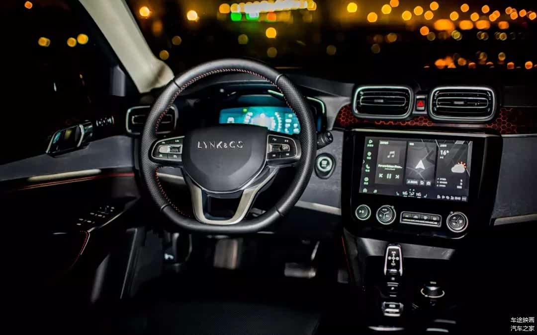 红色的缝线,面板用红色的线条形成蜂窝式的纹理,以全黑为基调的内饰,并没有更多抢眼的颜色,深邃的质感,便是领克在内饰设计上的与众不同。