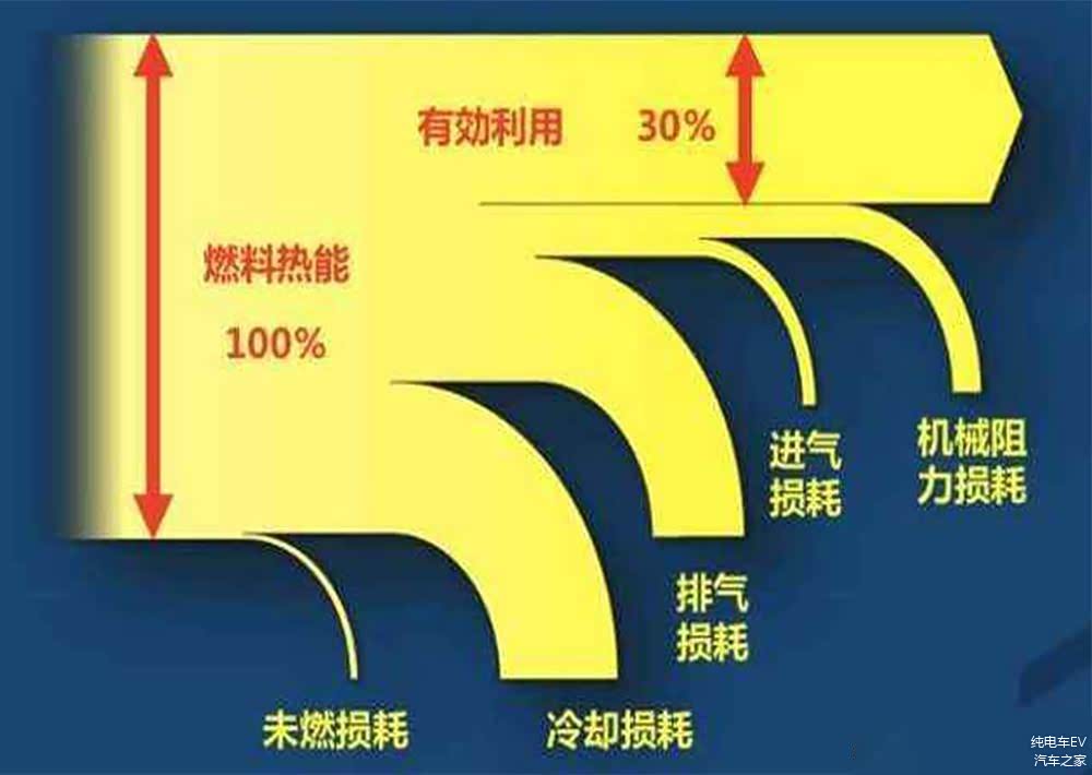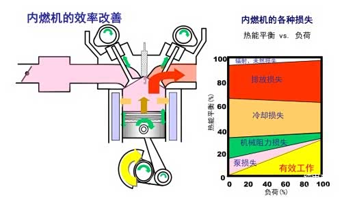 燃油车的发动机的能耗效率随着转数不同变化很大。发动机在低转数时的效率很低,采用新技术阿特金森循环,或者奥拓循环加阿特金森循环双循环系统,或者缸内直喷,或者涡轮增压等技术能小幅度提高效率。