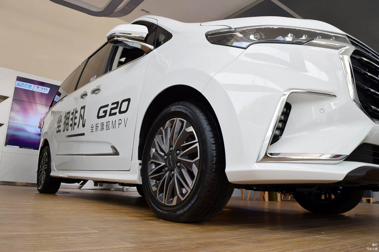 G20的轮毂采用双色设计,造型复杂,视觉效果不错,轮胎规格是225/55 R18(全系一致),备胎为全尺寸,安放在车底,悬挂方面,G20采用前麦弗逊后多连杆设计,如果调校得当,后独立悬挂无疑会对整动态中车辆的舒适性提供更好的帮助。