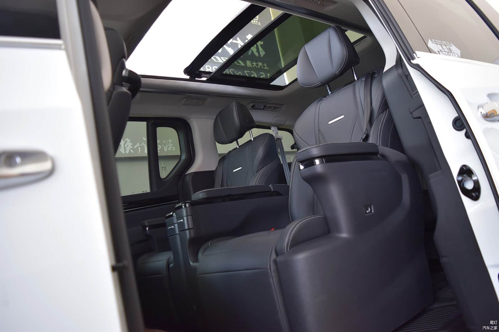 G20第二排座椅,顶配车型的4D贵宾私享VIP座椅采用全包覆顶级牛皮,头枕也能6向电动调节,座椅的前后高低以及腿托的调节按钮隐藏在座椅扶手内。在同级车型中,第二排有“航空座椅的”,G20算是独家。既然是主打第二排的车,那就把主打做好,这一点给大通点赞。