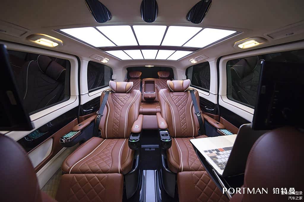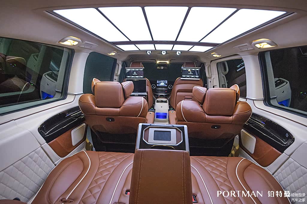 铂特曼改装商务相比罗伦士而言,在整体视觉和设计上更加奢华大气。不会吝啬于高端材质和大面积的铺装,细节也面面俱到,迈巴赫样式琼光之顶,土耳其羊绒地毯,迈巴赫钟表,尽显极致高贵典范。