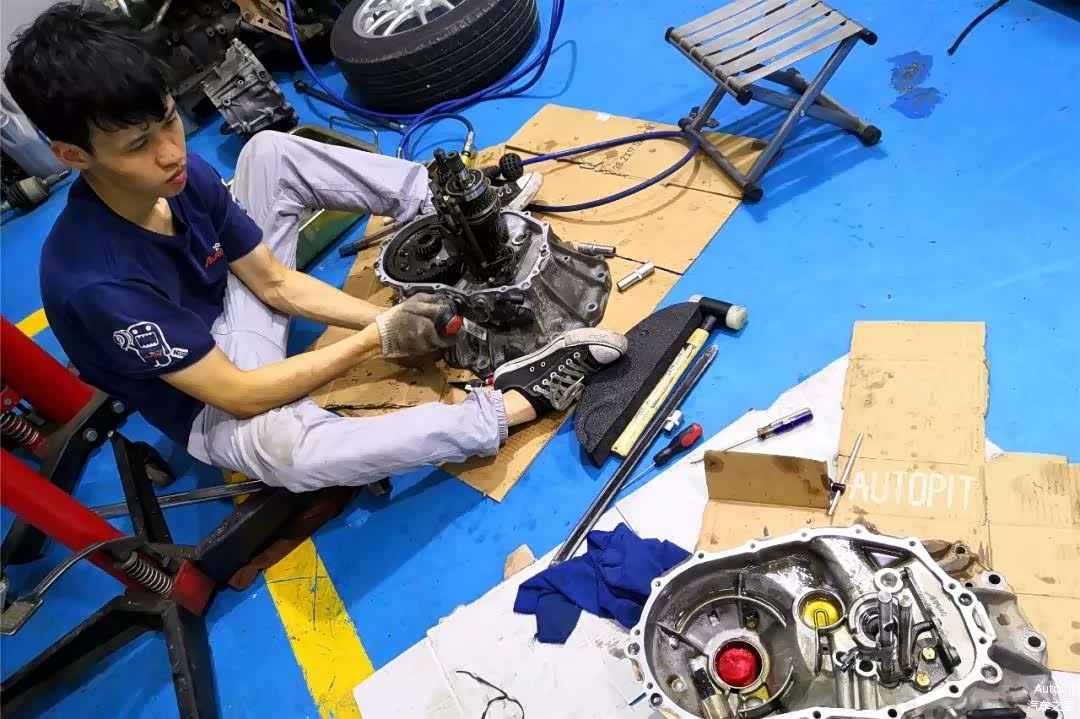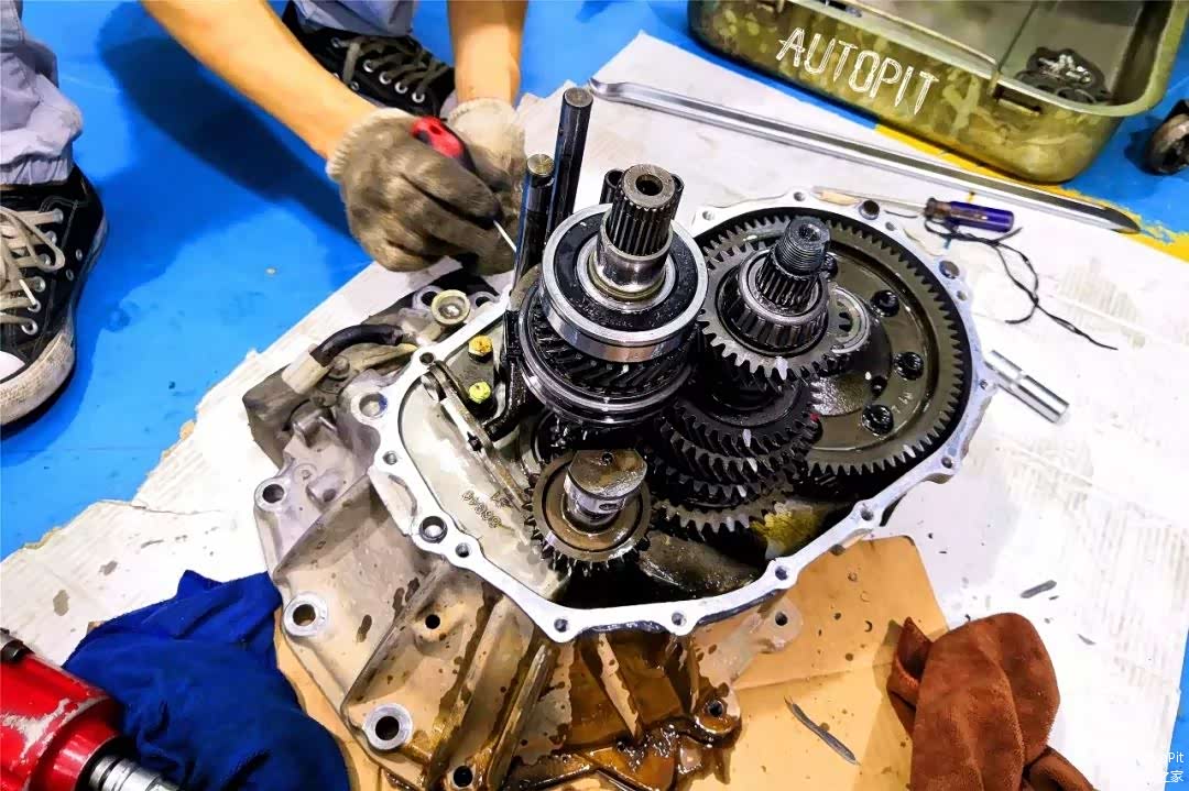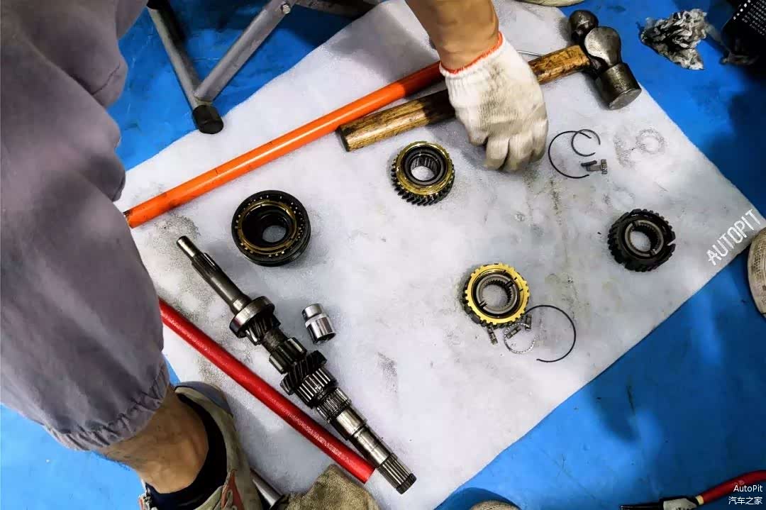 虽然雨燕的手动变速箱结构并不复杂,但是每一道工序都不能遗漏,拆装也必须非常小心,还要在齿轮上做好各个记号,避免失误。