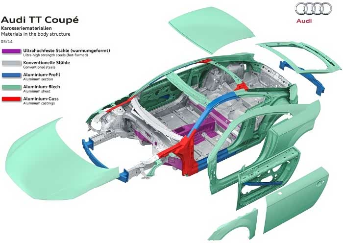 奥迪 TT作为一款小跑车,采用了全铝车身制造,同样出自MQB平台 。