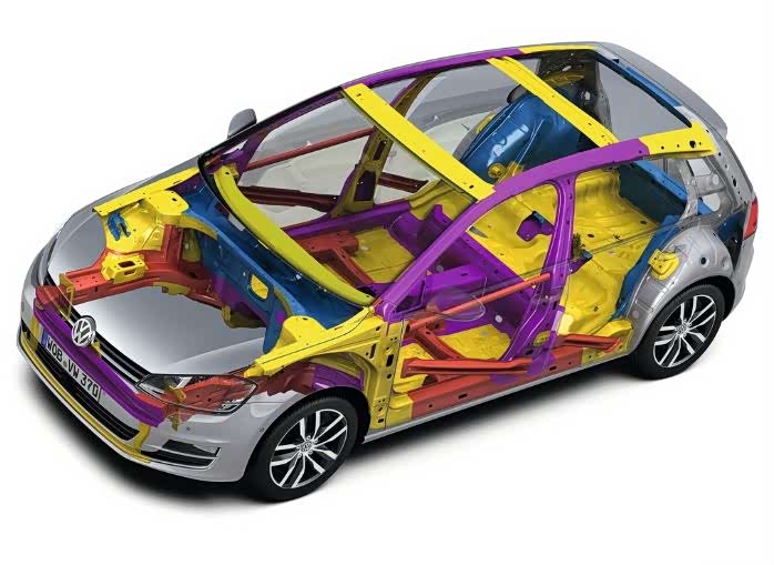 大众高尔夫诞生于 MQB-A1平台, 作为一款售价十多万的车型,白车身采用钢板制作,符合买菜车的身份。