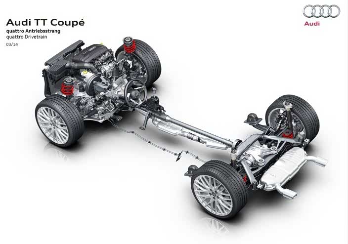 虽然高尔夫 R与奥迪TT 共享相同的翰德四驱系统,但大众集团为了拉开高尔夫 R 与奥迪 TT 的性能差距, TT 顶配车型 TTRS匹配了一台2.5L直列5缸 引擎,与奥迪 RS3 相同,而高尔夫 R 只搭配 EA888 引擎,这导致了两台车型的性能差距。奥迪 TT可以看作大众MQB平台下不惜成本的工程杰作, 大量使用高成本的铝合金材质打造零件,而高尔夫作为大众旗下的 “ 买菜车 ” 代表,更多的是成本的考量,底盘和车身几乎看不到铝合金材质,可见同为 MQB平台的 诞生的车型,由于市场定位的差距,最终的产品性能和生产成本也是差异巨大的。