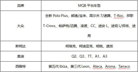 由于MQB平台 车型数量众多,限于篇幅就不再一一罗列,本文仅列举其中具有代表性的车型。