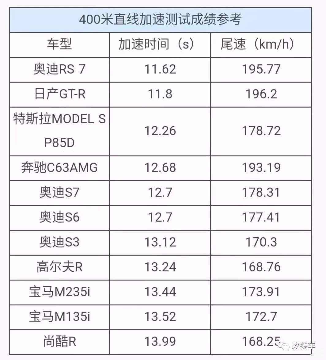 原厂涡轮能够做到如此优秀的成绩,也是得益于科学对应的调教,令B48发动机能够输出强劲的低扭并得以保持。如果大家不清楚要跑进12秒到底是有多难的话,不妨来看一看下面这组性能车的04加速成绩。