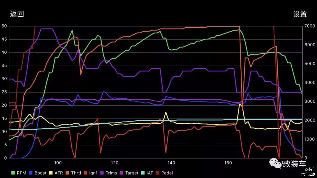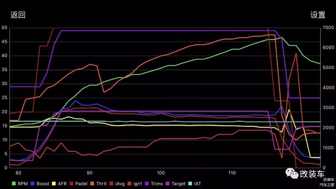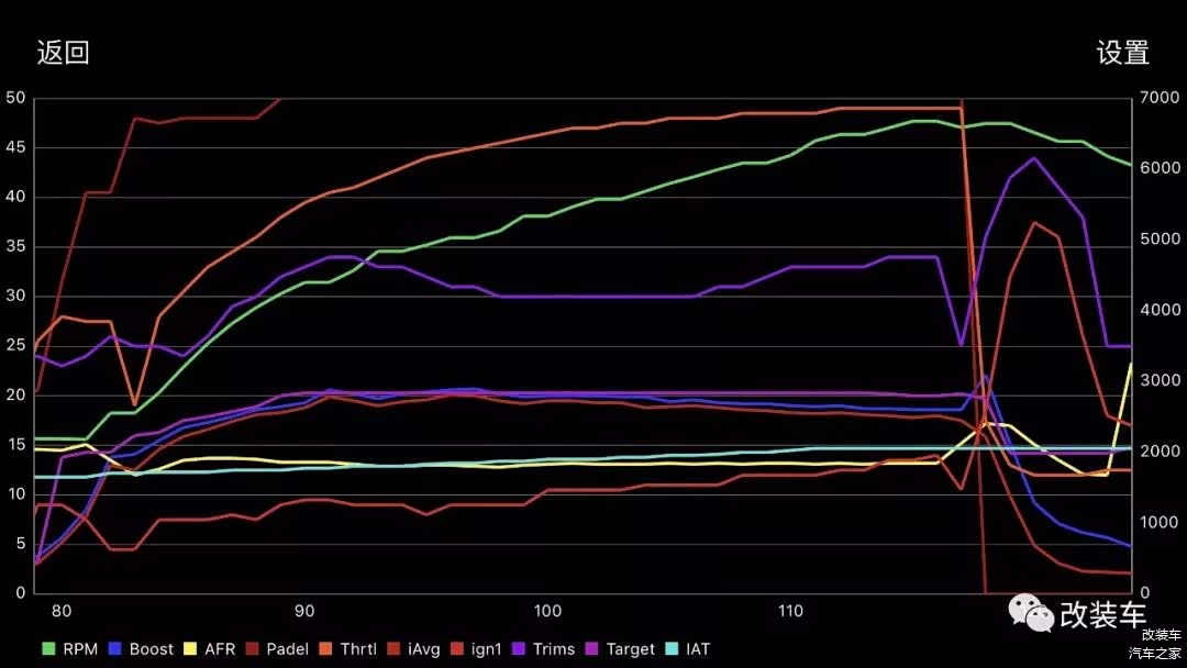 从测试中的Log图所示,点火效率保持在极高的水平,涡轮压力在BMS的把控下,紧贴着目标压力,涡轮工作效率相当高,这归功于加大的铝合金涡轮管路。