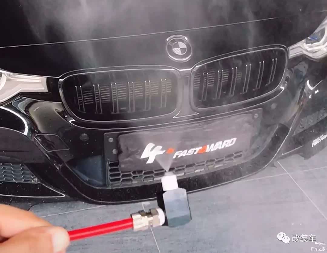 由于3系的中网结构实在有点局限,所以目前只能暂时先用这类喷雾来喷射自来水给中冷辅助降温,后期再选择优化方案。