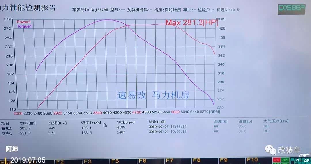 BEF程序写入后马上再次转动马力机,ECU经过优化后,再加上原来的BMS特调数据,轮上马力加持至270匹马力、420牛·米的扭矩,已经明显有大幅度的提升了。