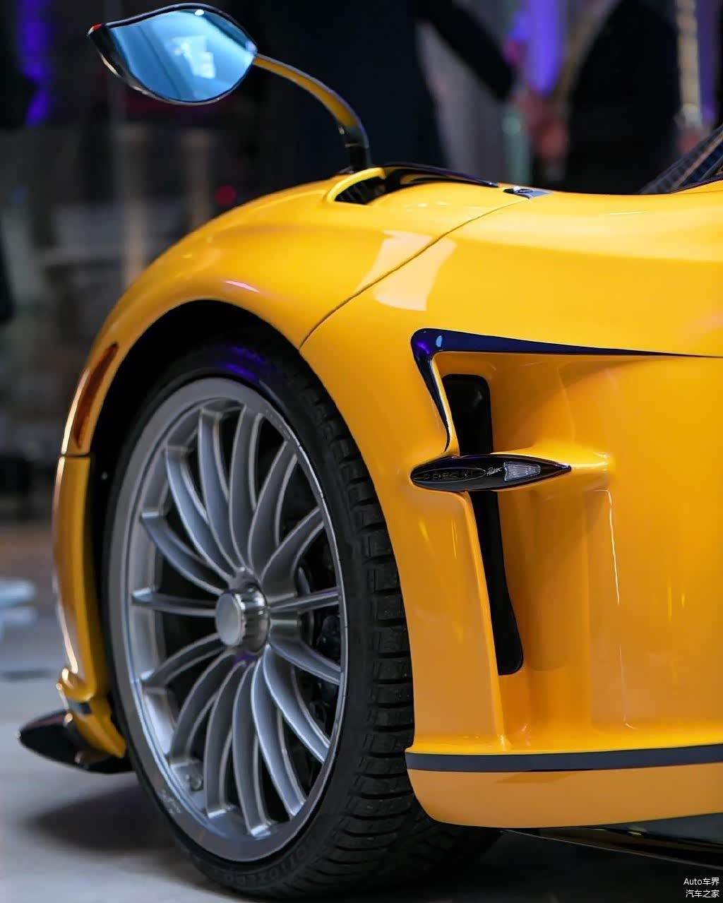而Huayra Roadster相比普通硬顶版,敞篷版Huayra的身形更加激进,车身采用了蓝色的钛与碳纤维编织的材料。车头似乎更长更低了一些,有点更像Zonda,前进气格栅采用了更加类似Huayra BC。