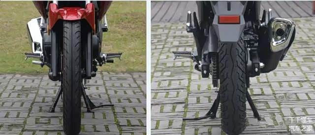 从上图可以看出,极客飒155NK的前轮与后轮宽度都比飞致150、幻影150宽出不少,视觉上极客飒轮胎与整车搭配更为协调,相比而言,飞致150与幻影150的前后胎对于其车身就显得单薄不少。