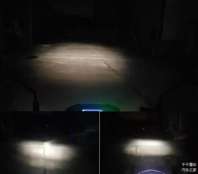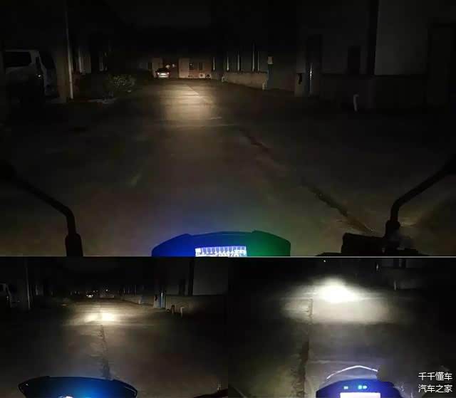 三车大灯的照明效果,都是在相同的光圈、曝光、ISO模式下拍摄的照片,可以从照片直接看出大灯夜间照明效果。