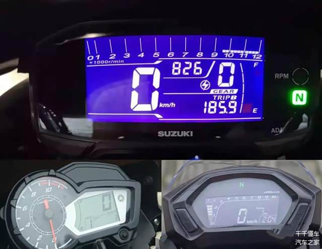 仪表对比上,幻影150与极客飒155NK都采用全液晶负显仪表,而飞致150采用比较常见的机械指针加单色的液晶屏的仪表,三车仪表均显示转速、时间、公里数、时速、油量等基本车辆信息。但幻影150仪表没有挡显(只显示空档),对于老手来说没什么问题,对于新手可能不太友好。值得注意的是极客飒155NK仪表具有RPM指示灯是独有的,转速到9000转以上时会亮起,应该是起高转警示的作用。
