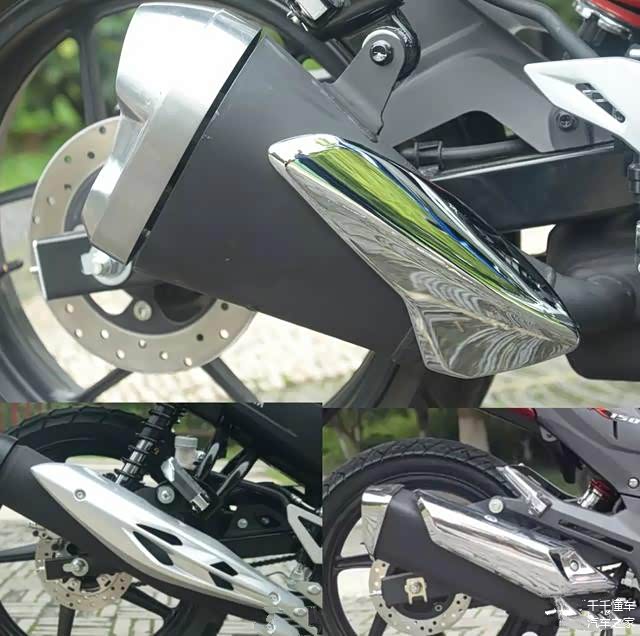 极客飒155NK、与飞致150、幻影150均采用黑色磨砂排气筒,加装防烫板。但唯一不同的是极客飒155采用双出排气,150排量的车型的比较少见,而飞致150与幻影150采用传统单出排气。怠速状态下,极客飒150NK排气声浪较飞致150、幻影150浑厚一些。