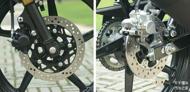 而飞致150前后都为单碟单活塞卡钳,因此制动上飞致要略逊与极客飒155NK与幻影150。