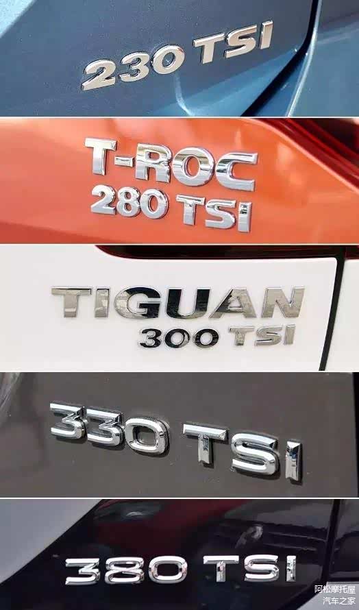 大众汽车作为最早进入国内汽车市场的品牌之一,相信大家对它应该都不陌生,一直以来,大众在国内的销量都很高,朗逸、Polo、帕萨特等车型在大街上更是随处可见,不过如果有细心的朋友可能会留意到,近年来大众车尾都会标有280、330、380等字样,后面的TSI想必大家应该都知道是涡轮增压的意思,带有TSI尾标的一看就是涡轮增压车型,给人感觉好像上了一个逼格,不过对于前面的数字就有好多人不懂了。今天小编就来给大家介绍一下这些数字分别是什么意思,买车前可一定要看准了。