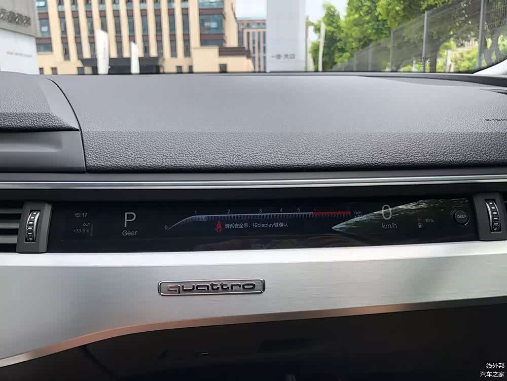 ▲这辆A4L四驱版,在副驾能看到Quattro标识以及显示车辆信息的小液晶屏