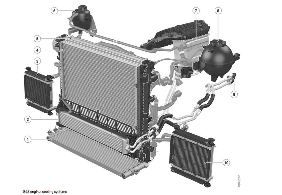 为排出这台发动机的热量,S58B30A 发动机配备三个大型散热器和额外的机油冷却器。图谱控制可变排量油泵带有额外的吸油层和油底壳,确保 S58B30A 在任何极端条件下都能获得足够的润滑。