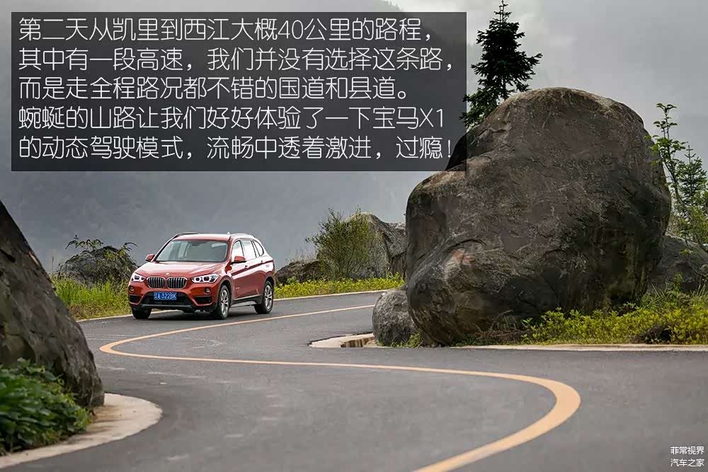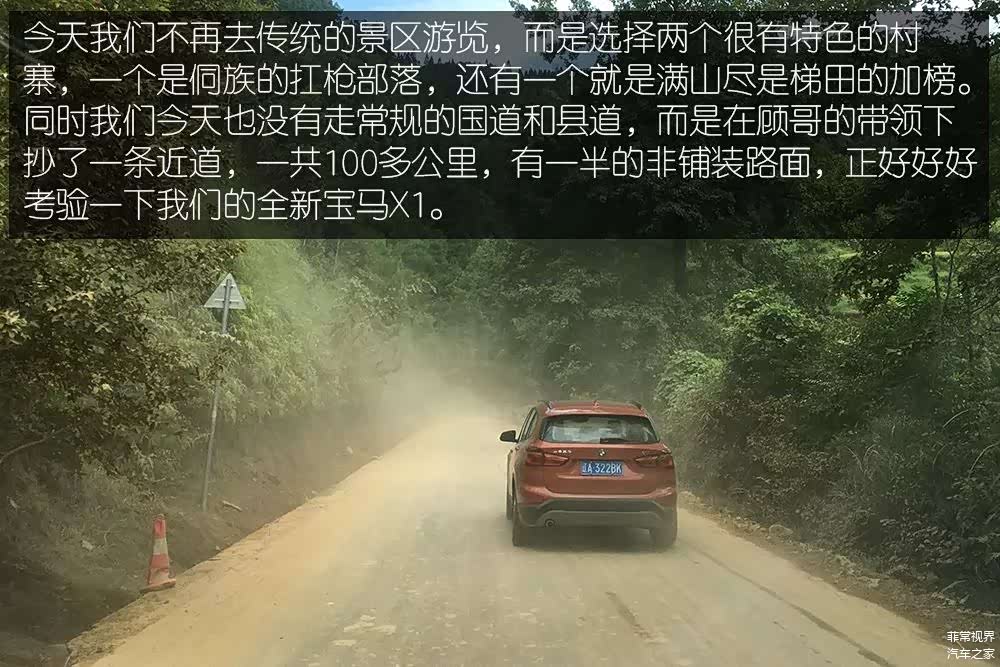 而作为我们这次旅途最重要的伙伴,新宝马X1也给我们留下了深刻的印象。巴伦西亚橙的车身配色让我们走到哪里都是众人的焦点。优美的车身线条和加长后纤细的腰身深得我们的喜爱。空间自然就不用说了,宽敞的后排和舒适的乘坐体验让小雅把我一个人“丢弃”在前排很多天,自己一个人在后排享受。而我更关心的动态性能,宝马X1也交出了满意的答卷,虽然这次陪伴我们的1.5T的3缸车型,动力不如2.0T车型来得迅猛,但是依然不影像我们开着它在贵州的山路上肆意的驰骋。