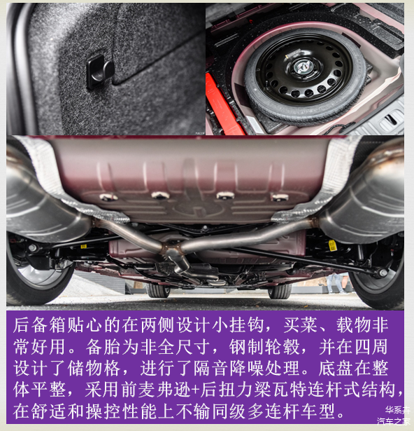 悬挂采用前麦弗逊+后扭力梁+瓦特连杆结构,兼顾舒适和操控性能,不输同级多连杆结构机械性能。