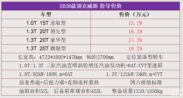 2020款威朗共推出四款车型,全部为涡轮增压发动机,