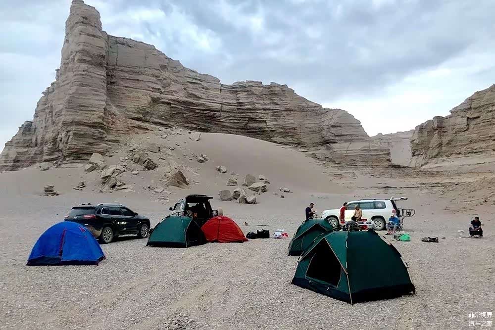 到达大海道核心区水源地附近已经是傍晚时分,在经过短暂修整之后,我们就开始寻找合适的宿营地,虽然靠近水源地对于宿营来说会更方便,但是水源地附近十分的空旷,而且大海道中经常是狂风四起,所以我们找了一个三边都有雅丹遮挡的地方作为当晚的宿营地,这里还有注意的是,为了避免被雅丹顶部掉落的石头砸伤,宿营地也要与雅丹留出安全距离。
