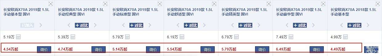 长安欧尚X70A目前有14款车型在售,指导价格区间为4.99万-8.59万元,在汽车之家网站上可看到,目前这辆车有小幅优惠,4.99万的起售价格进一步降至4.49万元,其余国五的车型最高有着1万左右的优惠,2019款的国六车型优惠相对少一些,幅度为6000元左右。