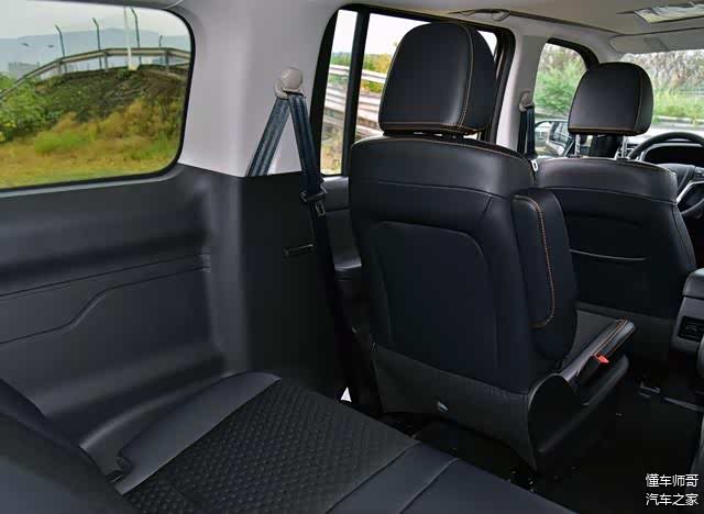 座椅采用的是2+2+3的形式,这样布局的好处就是在进出第三排时更方便。第三排座椅可整体向前翻折,来拓展后背厢的空间。实际体验效果上,后备厢内饰部是比较平整的,在摆放物品时较为便利。
