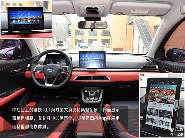 内饰-走进e2的车内,中控台上方那块10.1英寸的大尺寸显示屏让人目不转睛,同时该显示屏可进行横竖切换,界面显示清晰且细腻,功能性也非常齐全,这套Di Link2.0系统完善度也很高,你所熟悉的App在应用市场里都能找得到,另外这套人机交互系统也非常智能,并且操作起来很顺滑.中控台上方平直的线条加上红黑色的搭配使得中控面板层次分明,主驾仪表也是由一块全液晶仪表代替,这在比亚迪旗下的各系列车型当中普及度非常高,功能显示也非常全面,在这里我就不多一一介绍了,有条件的朋友可以到家附近的4S店亲身感受一下。