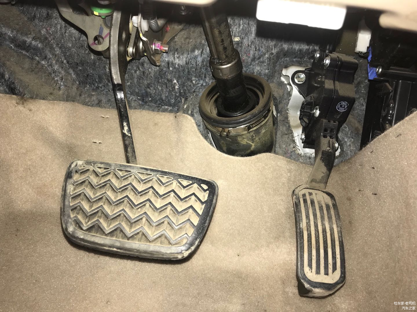 油门踏板与制动踏板底部普通脏污,无锈迹与泥沙痕迹。