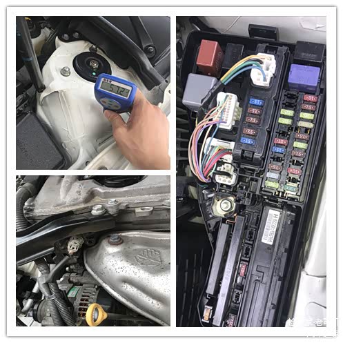 看了下两前减震器塔峰无钣金修复痕迹,螺丝无拆卸痕迹,发动机机脚无拆卸,气门室盖垫无漏油痕迹、发动机舱保险盒内无拆卸,排除了发动机吊装维修的可能。