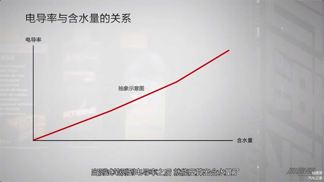 含水量测试笔通过制动液里面的电导率来判断水的含量的。厂商采集了主流制动液不同含水量的电导率,并把这个数据输入到测试笔中,当测试笔测到电导率之后,就能反算出含水量了。
