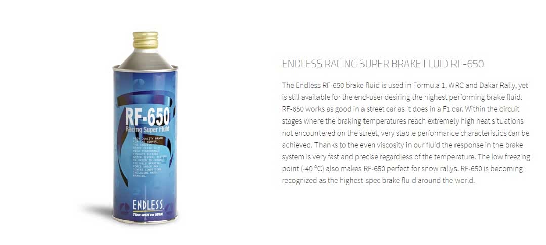RF-650是保时捷911 GT3 CUP的原厂刹车油,甚至号称是奔驰F1车队所使用的刹车油,说是F1冠军同款也不为过。在这种级别的赛车比赛中,刹车油可能每场比赛就要更换一次。甚至F1赛车卡钳的寿命,都只有两千公里而已,这个两千公里当然不是被刹车油腐蚀的,但足以说明赛用和民用的区别,寿命在比赛中往往是可以被妥协掉的。