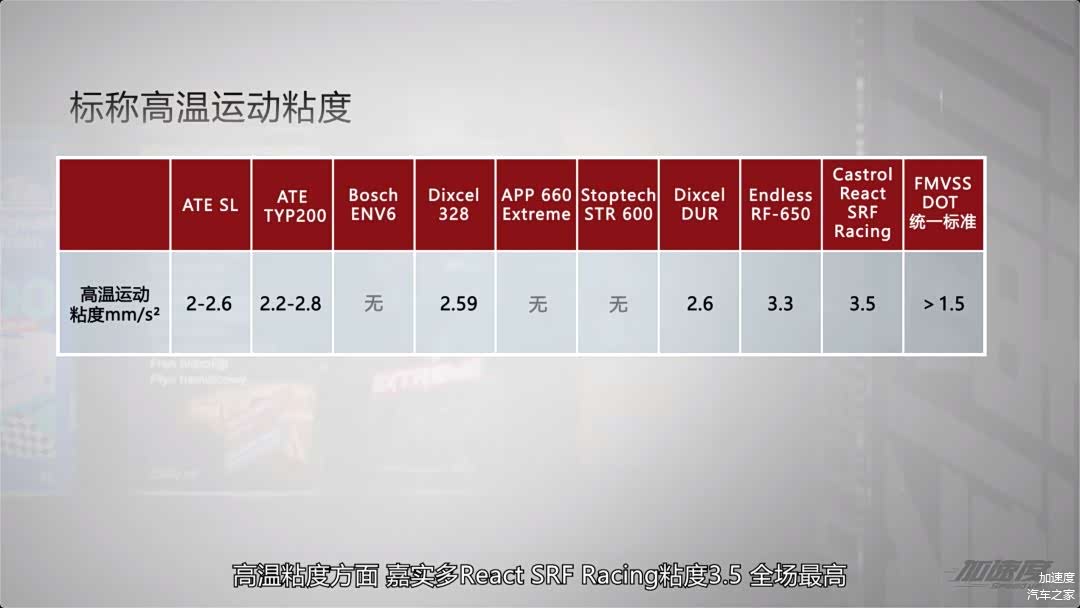 高温运动粘度反应的是高温的性能,制动液在制动过程中能够在活塞与活塞缸之间形成一层油膜,避免两者直接接触所造成的磨损,起到保护零件的作用。为了确保高温下赛车系统的正常工作,一般赛车用的刹车油高温粘度都很高。相信很多朋友可能知道赛车都倾向于使用高粘度机油,这点在选择刹车油上也一样。